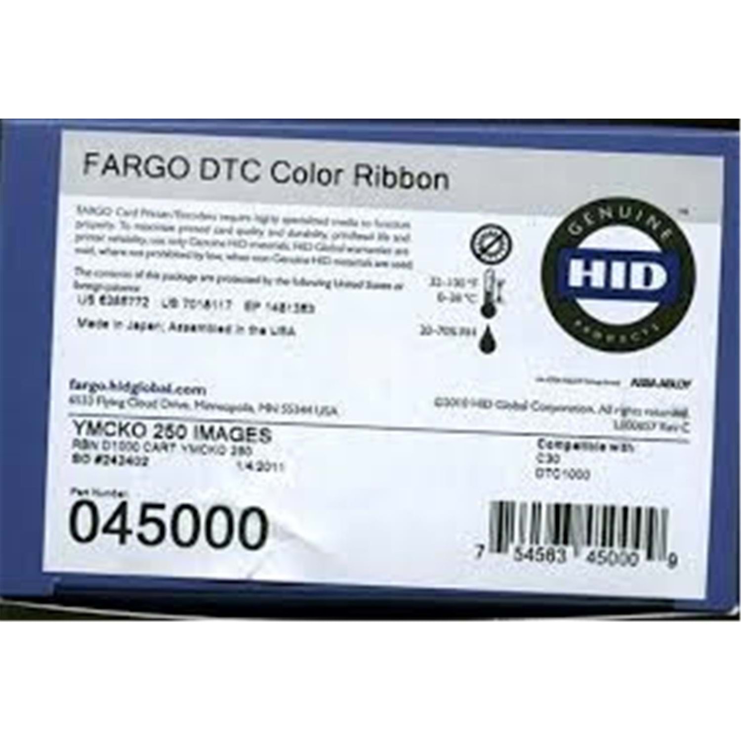 Fargo 045000 DTC1000-DTC1250e YMCKO Renkli Ribbon Tek Yüze 250 Renkli Baskı