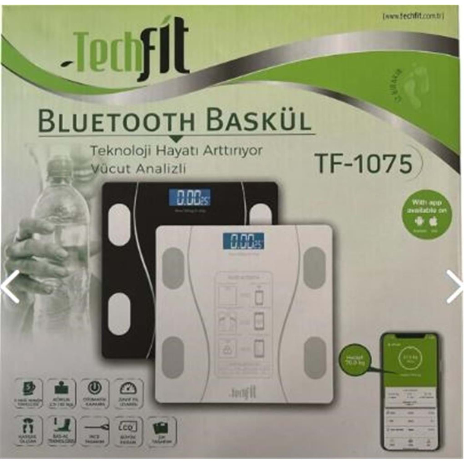 Techfit Dijital Baskül TF-1075 (Bluetooth Özellikli) Hassas Ölçüm (2.5-180kg)