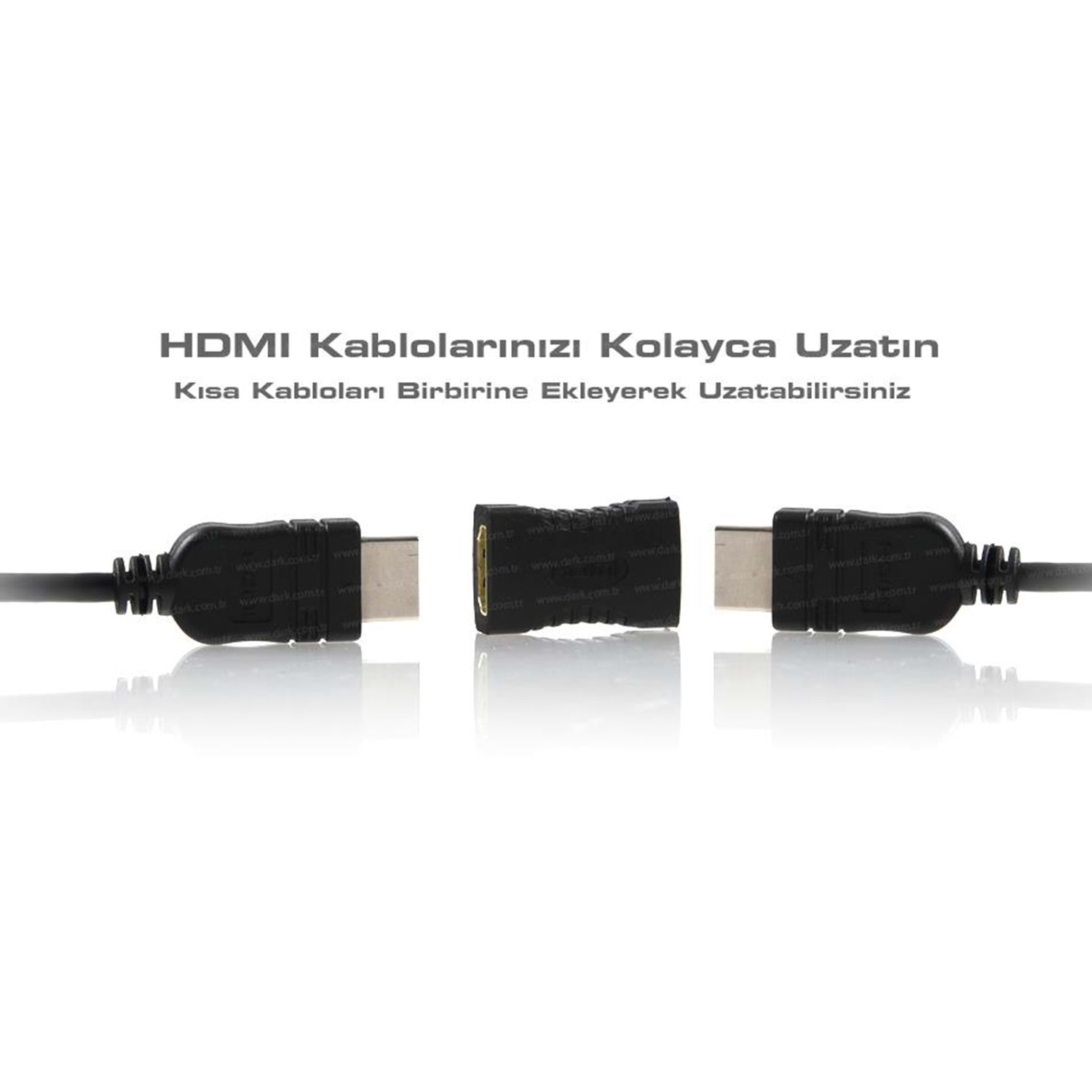 Dark HDMI ürün ailesinden HDMI kabloları daha uzağa taşımak, HDMI kablo veya ürünlerin yönünü değiştirmek için hazırlanmış HDMI Dişi - HDMI Dişi dönüştürücü adaptör karşınızda! Altın kaplamalı yüksek iletken uçları ile 3D veya 4K/30Hz sinyaller taşıyan ürünler de dahil olmak üzere tüm erkek uca sahip HDMI ürünler ile bir arada kullanabilirsiniz.