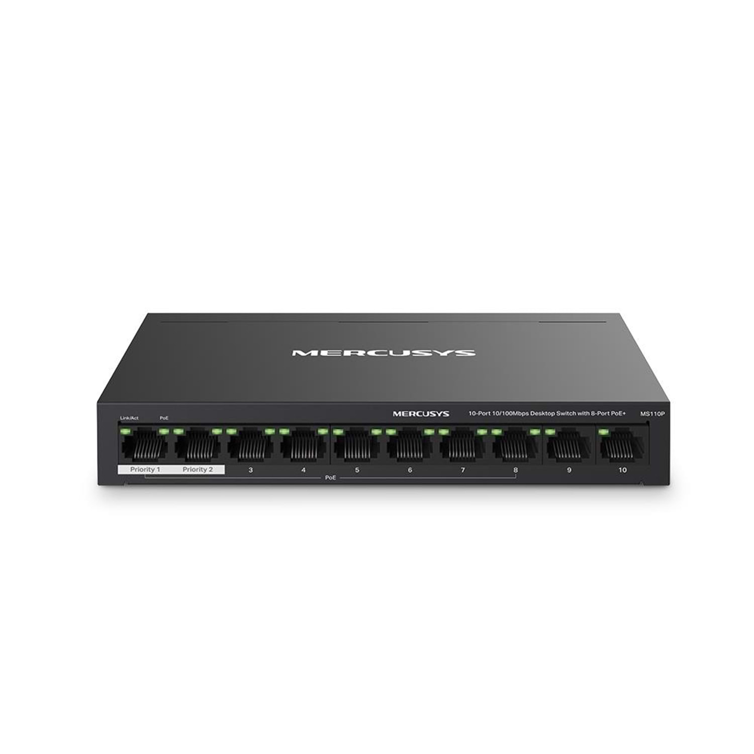 Tp-Link Mercusys MS110P 8 Port 10-100 Mbps Poe+ 2 Port 10-100 Switch Metal Kasa
