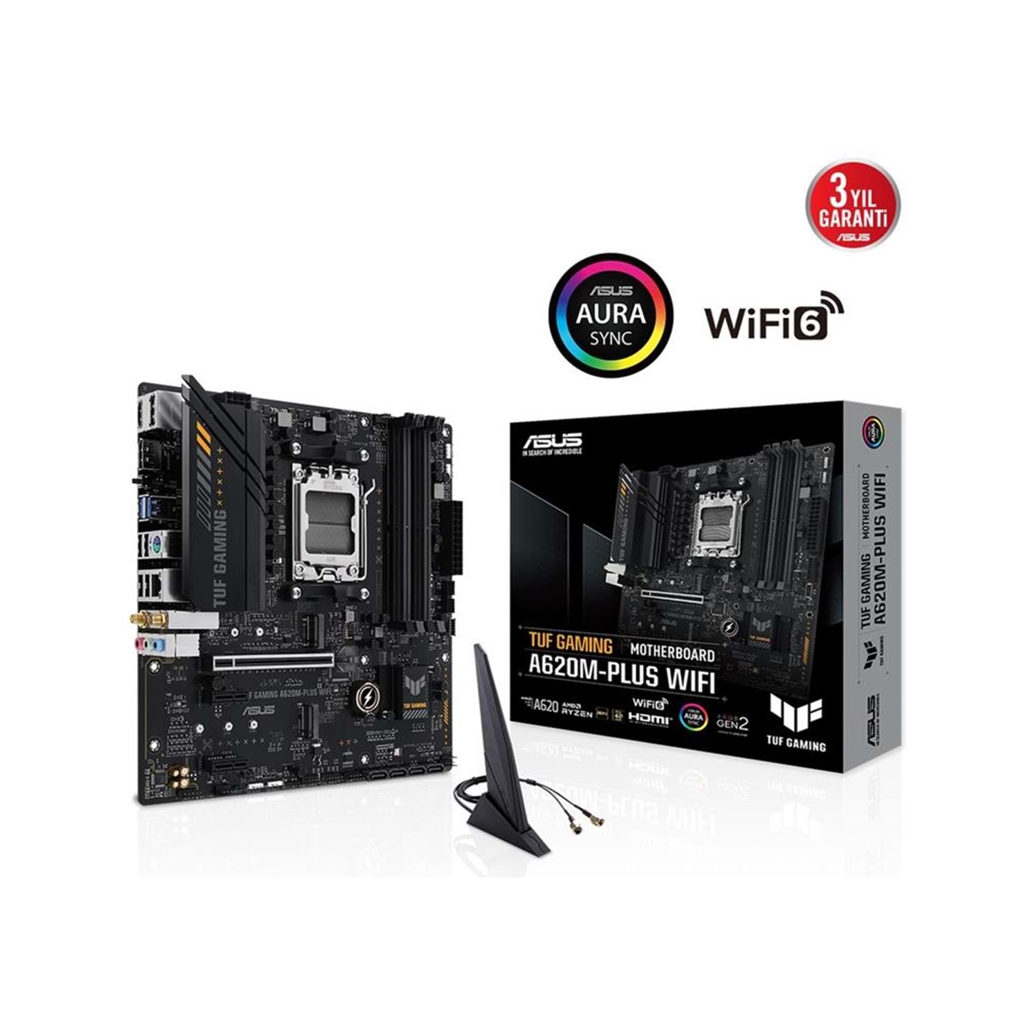 Asus Tuf Gamıng A620M-Plus Wıfı Amd A620 Am5 Ddr5 6400 Aura Rgb 2.5Gbit Lan Matx Anakart