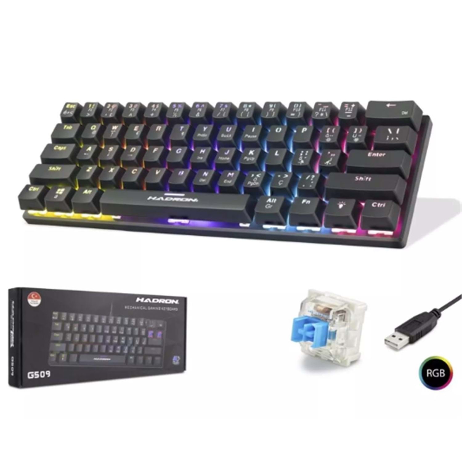Hadron G509B Siyah Mekanik Gaming Mini Klavye Blue Switch RGB