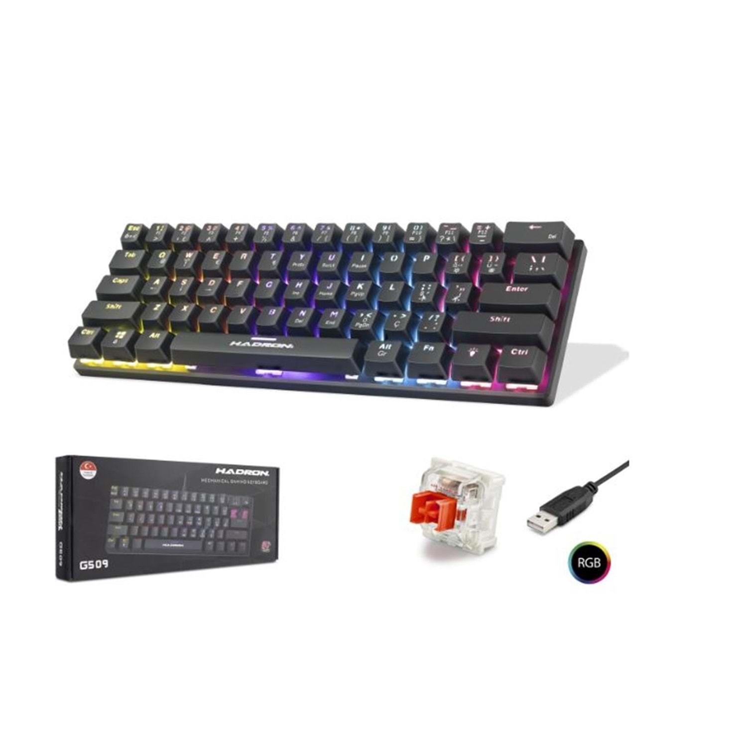 Hadron G509R Kablolu Oyuncu Mini Klavye Mekanik Red Switch Rgb Q Siyah