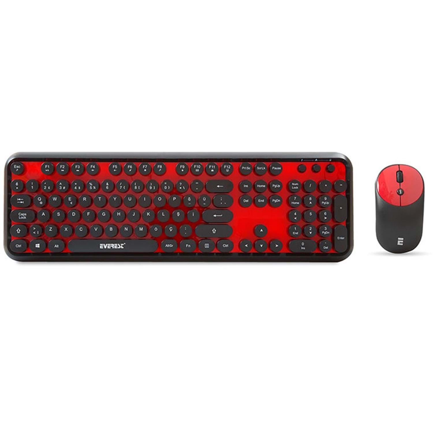 Everest Round KM-6282 Siyah Kırmızı Kablosuz QMultimedia Klavye + Mouse Set