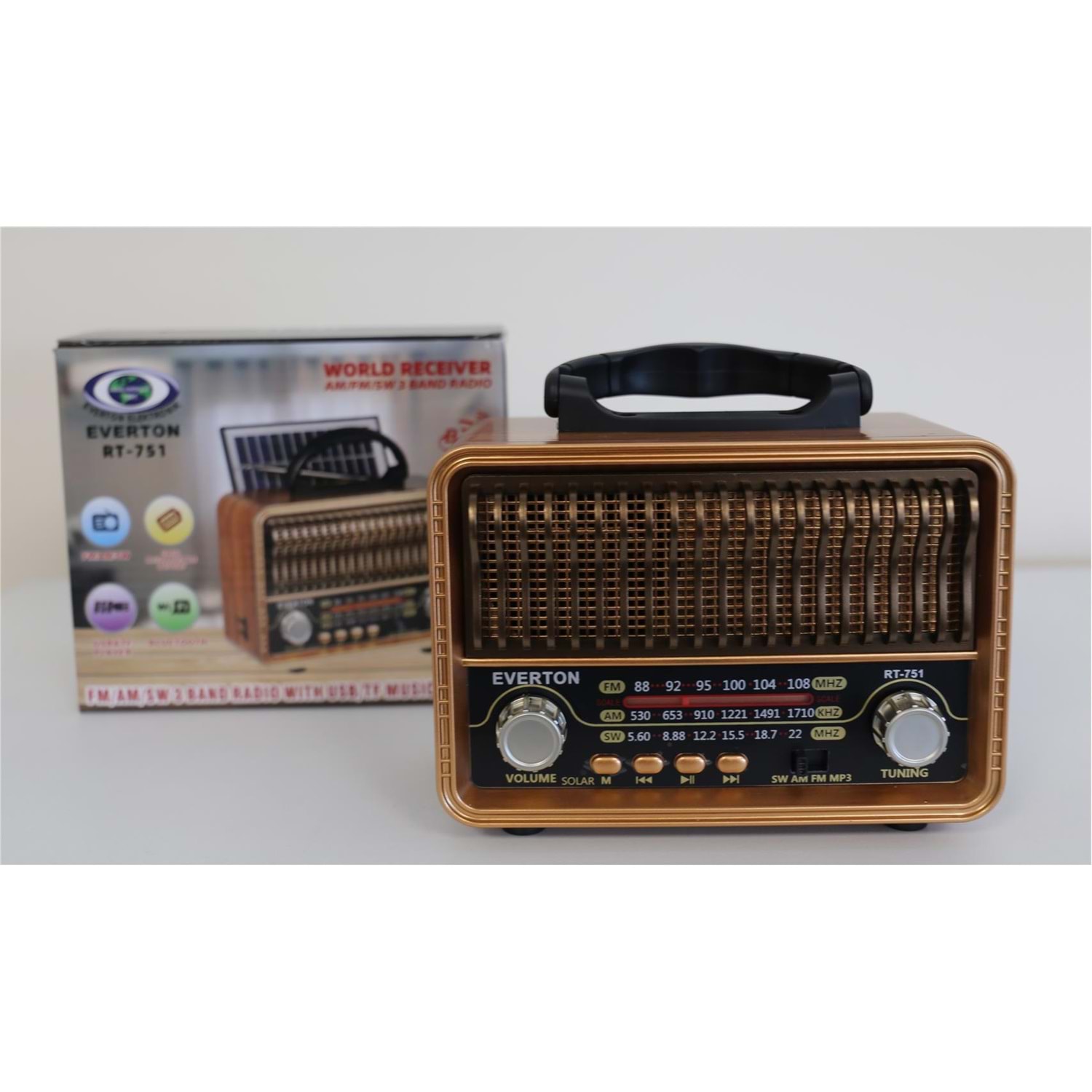 Everton Rt-751 -Fm-Am-Sw-Usb-Tf Card-Aux Nostaljik Radyo Solar (Güneş Paneli)