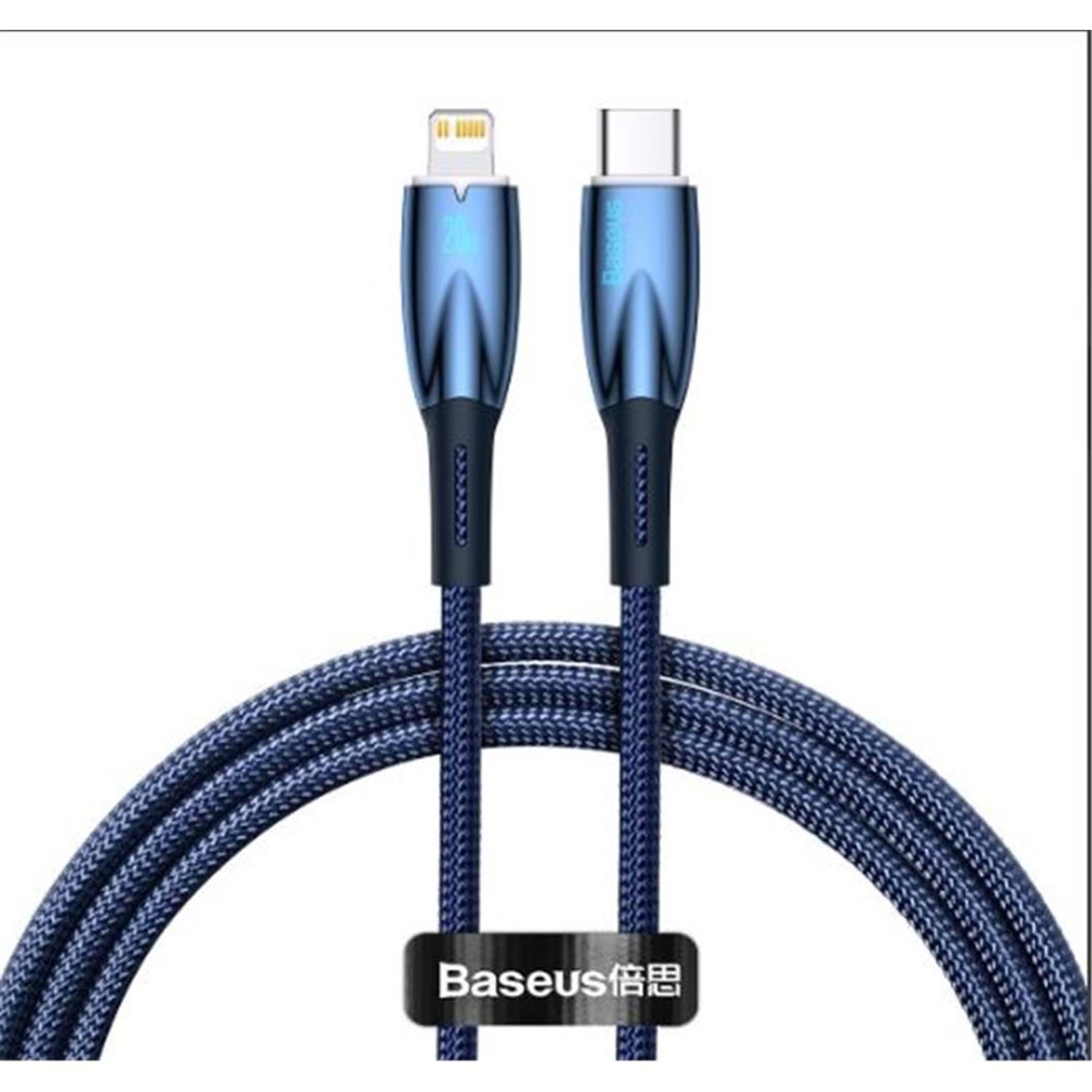 Baseus Glimmer Series Mavi CADH000003 1mt 20W Type-C to Lightning Şarj Kablosu Örgülü