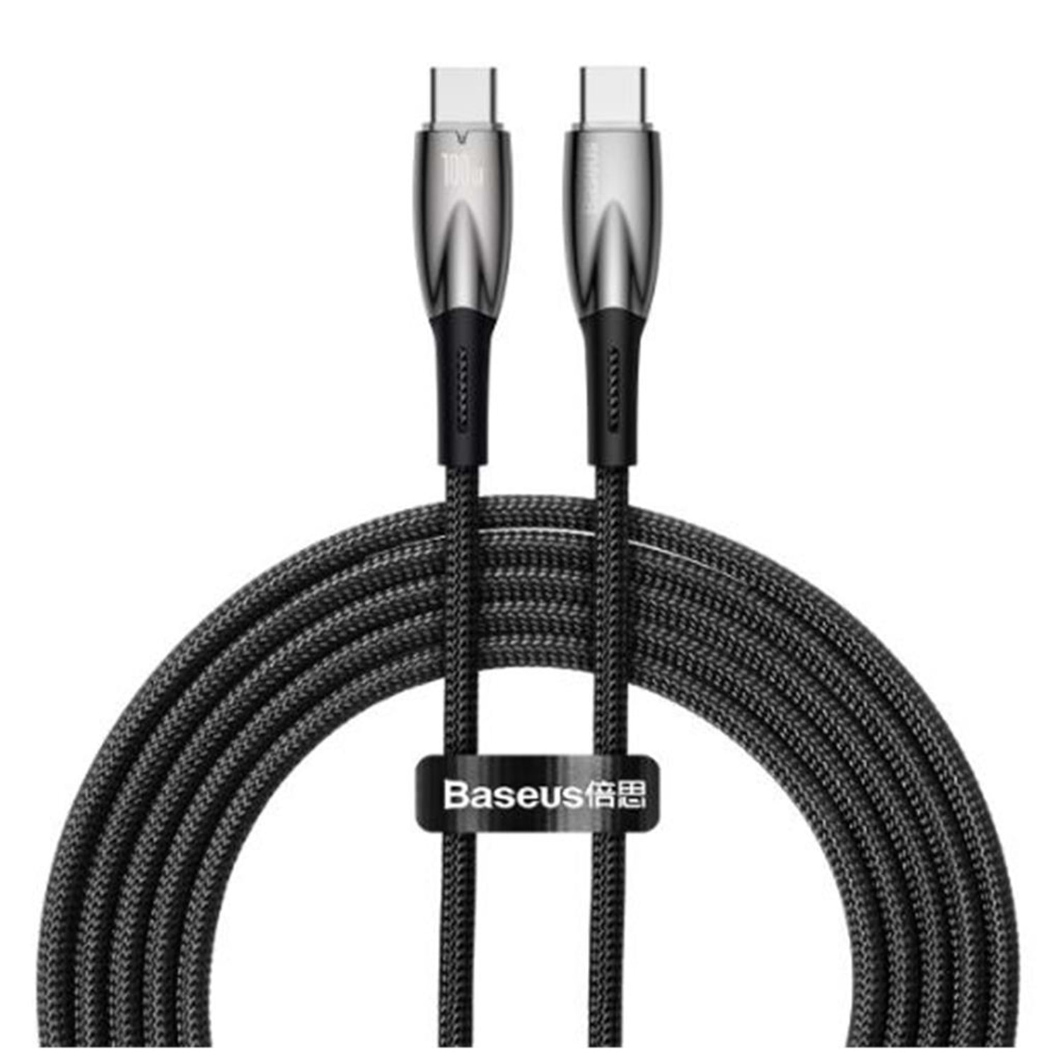 Baseus Glimmer Series Siyah CADH000801 2Mt 100W PD Type-C To Type-C Şarj Kablosu Örgülü