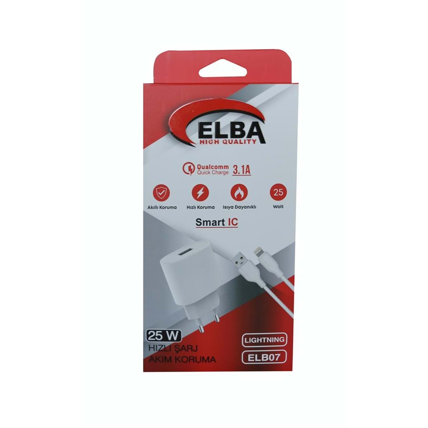 Elba ELB07-USB-25WIOS Beyaz 25W Usb Ev Şarj Kafa+ Usb 1mt Lightning Kablo QC4.0 Hızlı Şarj