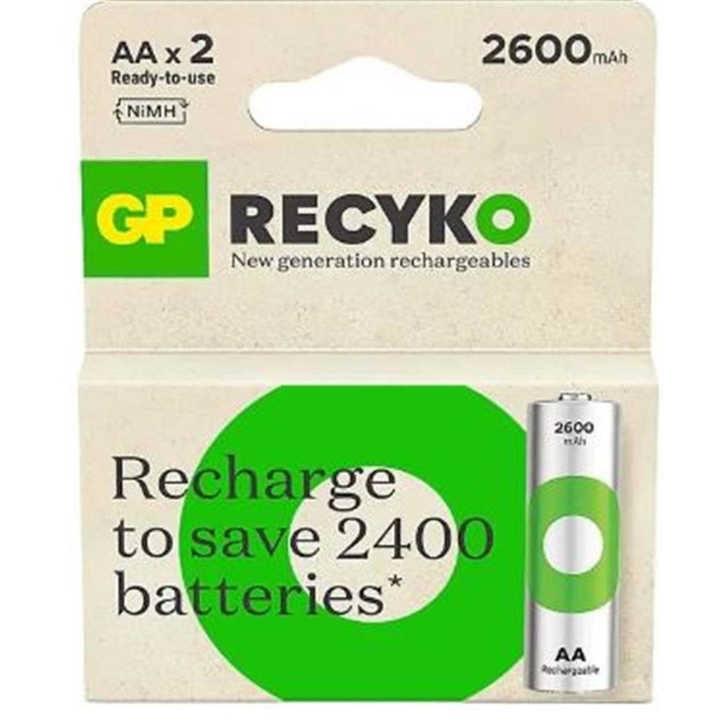 GP AA 2600 mAh Şarjlı Kalem Pil 2'li Paket GP270AAHCEMTR-2GB